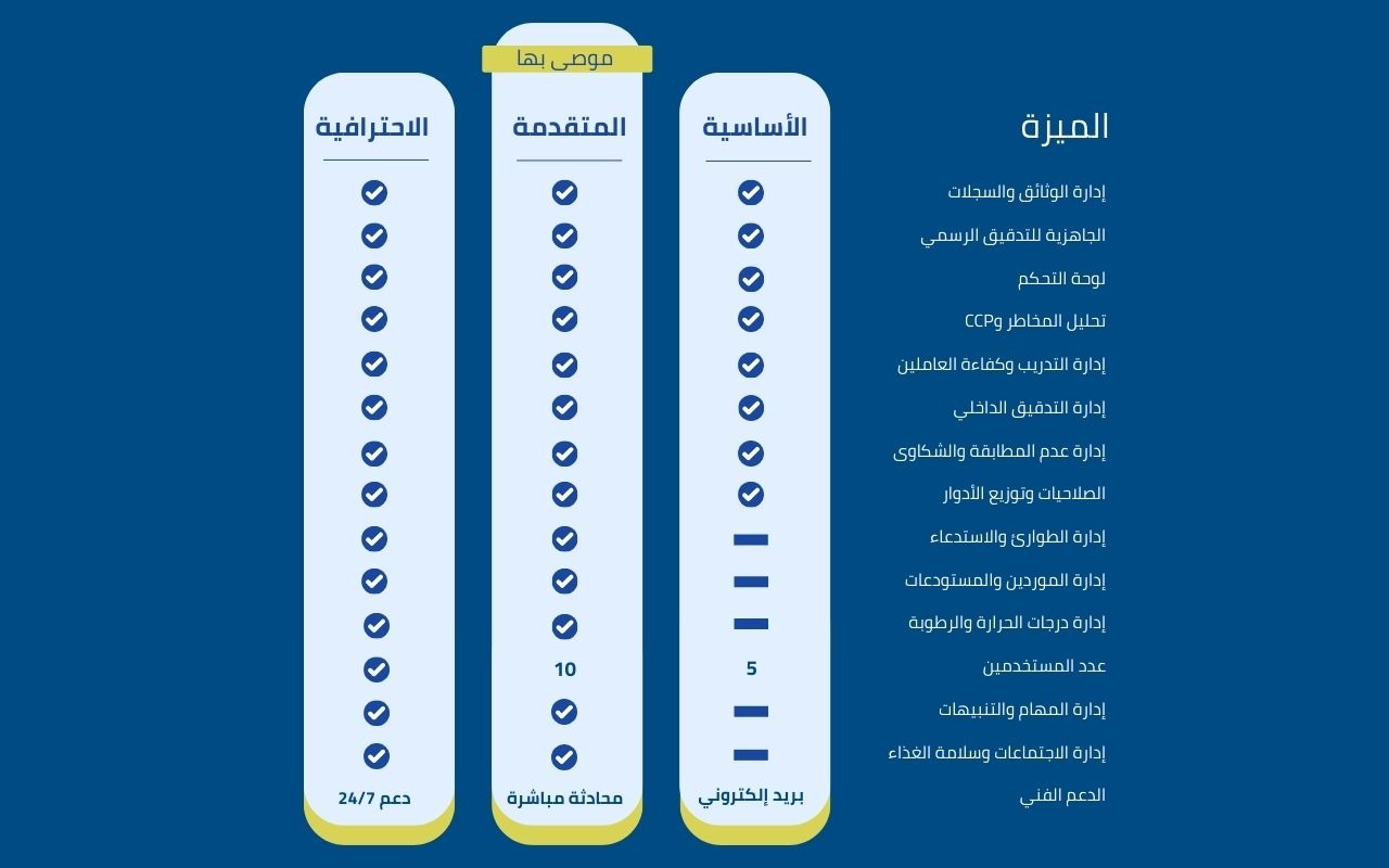 نقدم لك نظام إيزو بلس عبر باقات سنوية مرنة مصممة خصيصاً لتنقل منشأتك من الإدارة التقليدية إلى الكفاءة الرقمية الشاملة. اختر الخطة التي تمنحك السيطرة الكاملة على معايير الجودة لديك